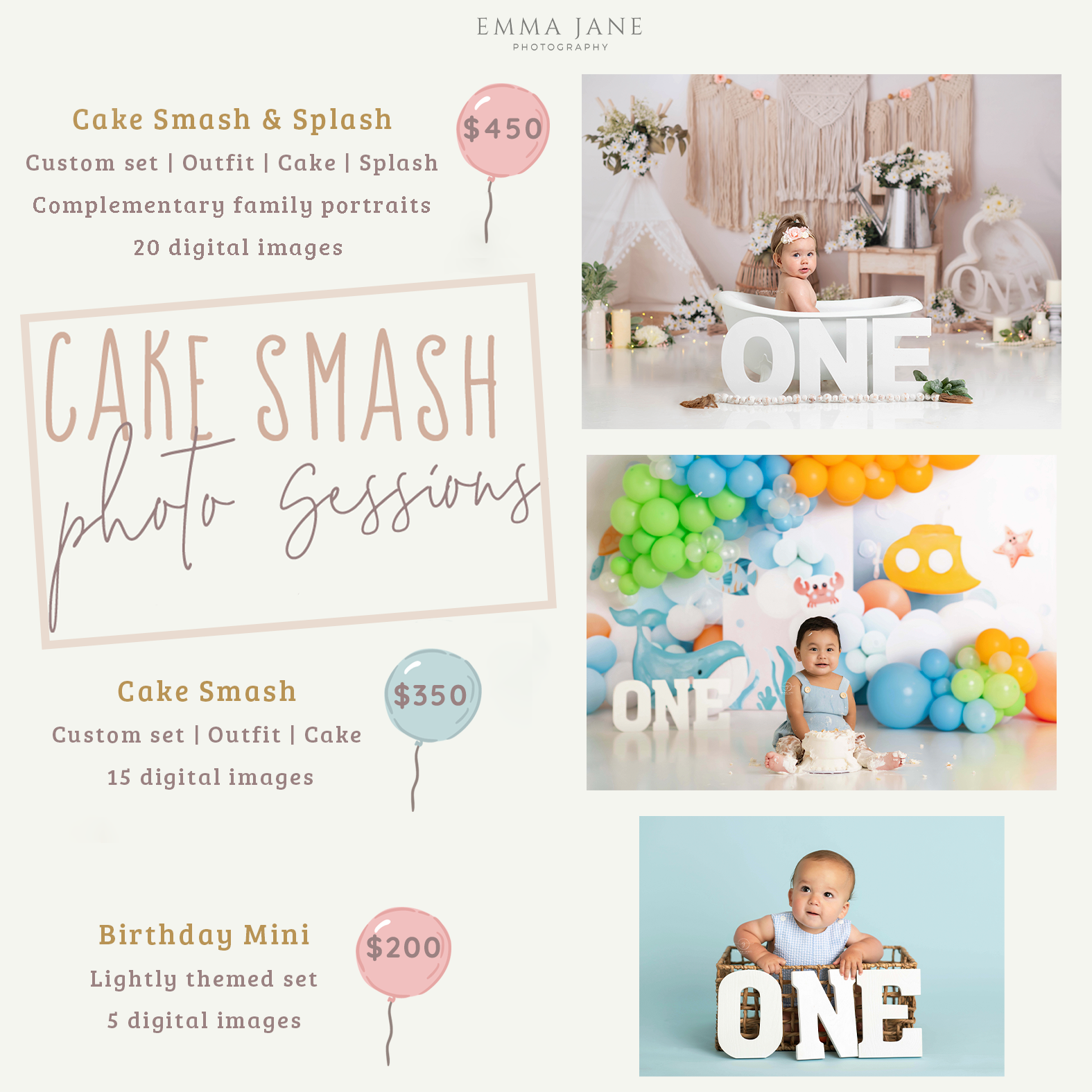 EJP specializes in Cake Smash & Splash Sessions! These sessions are currently being offered for 1st and 2nd Birthdays.